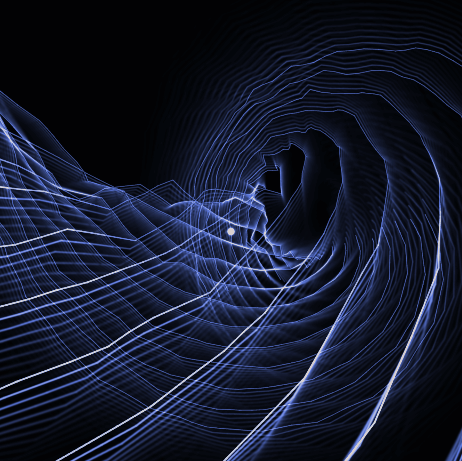 To build this celestial structure in TouchDesigner, I started with basic grid and sphere geometries. By applying a combination of noise, twist, and fractal operators, I warped these base shapes into a deep, swirling vortex. The lines naturally bend and curve toward the glowing central core, simulating an immense, magnetic field of creation.