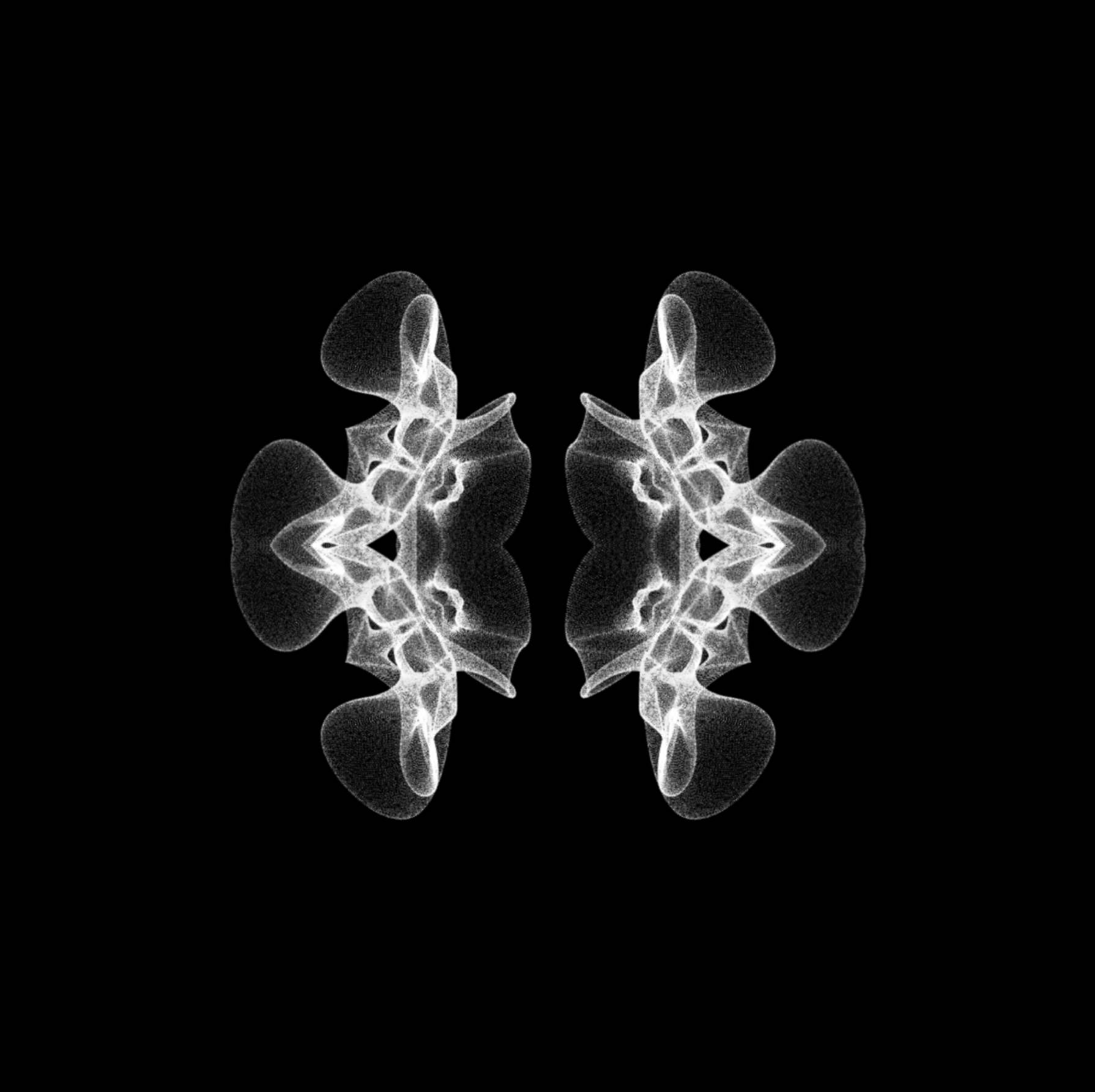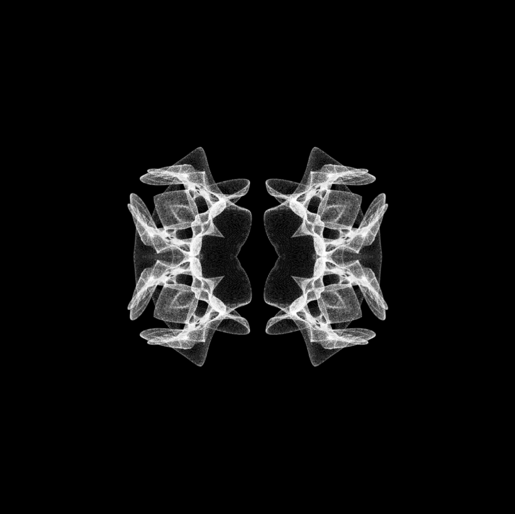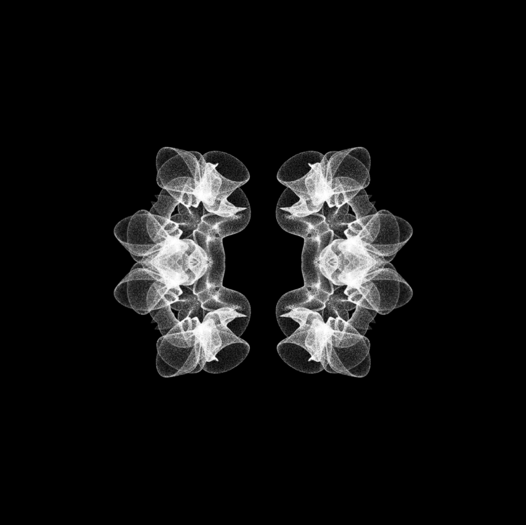 As a final touch, I applied a mirror effect to this chaotic, moving structure to achieve perfect symmetry. The resulting high-contrast, black-and-white piece creates a meditative visual experience, evoking the feeling of a digital mandala or a moving Rorschach test."
