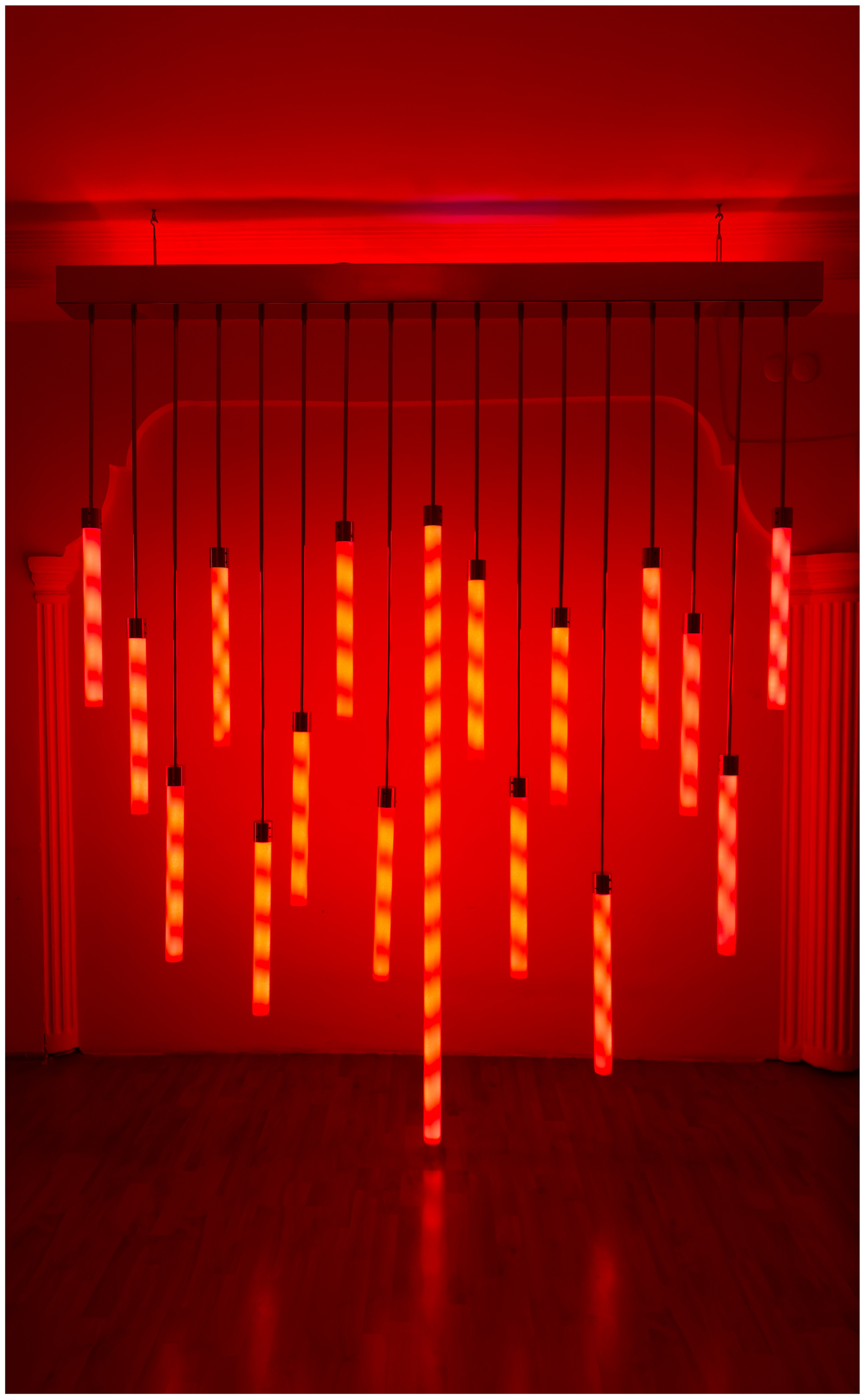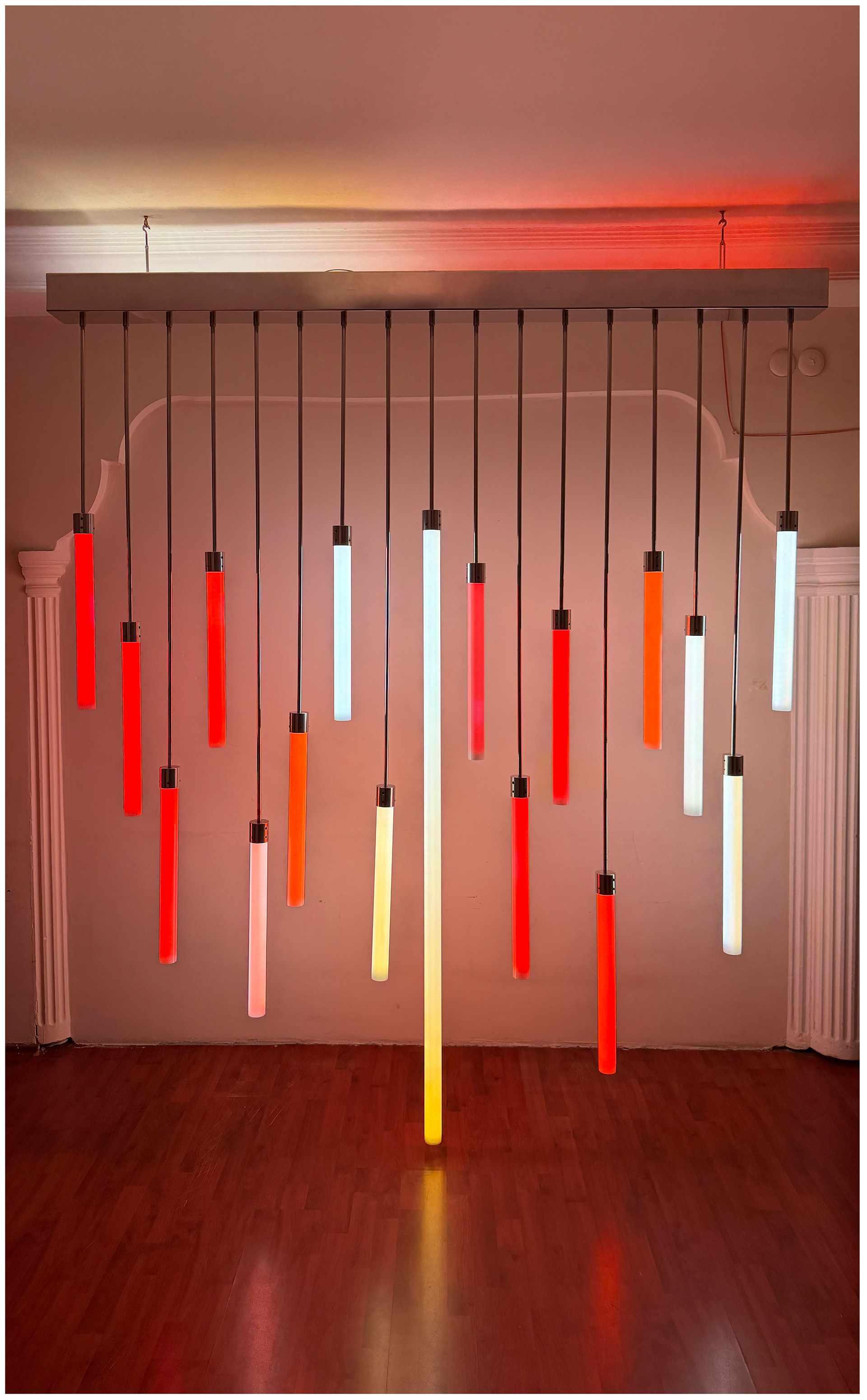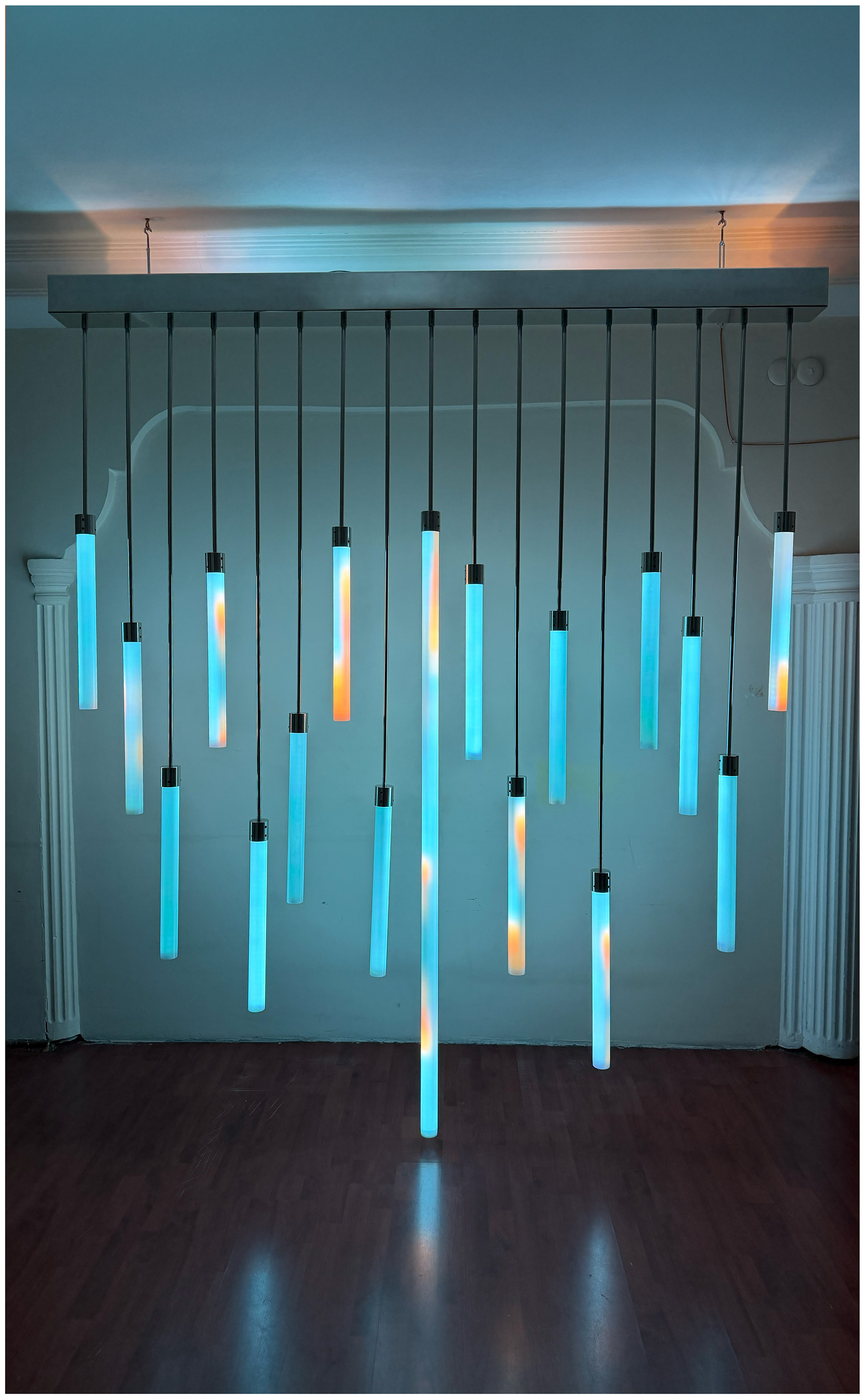 I stepped out of the purely digital realm and created a physical light installation. The concept is deeply rooted in the idea of the Sephirot and the Tree of Life. I designed the structure so that the longest, central LED rod symbolizes the 'Self'—the core of our identity constantly trying to maintain balance and order. The surrounding suspended rods represent the chaotic, ever-changing emotions, experiences, and energies that constantly interact with us.